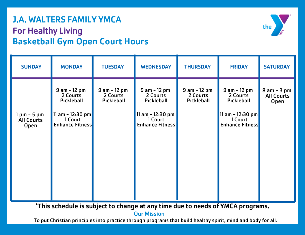 Whether you’re planning a group fitness workout, swim session, or wellness class, our up-to-date schedules make it easy to stay active. View daily offerings and plan your visit to the J.A. Walters Family YMCA. Classes and times are subject to change, so check back regularly for updates.